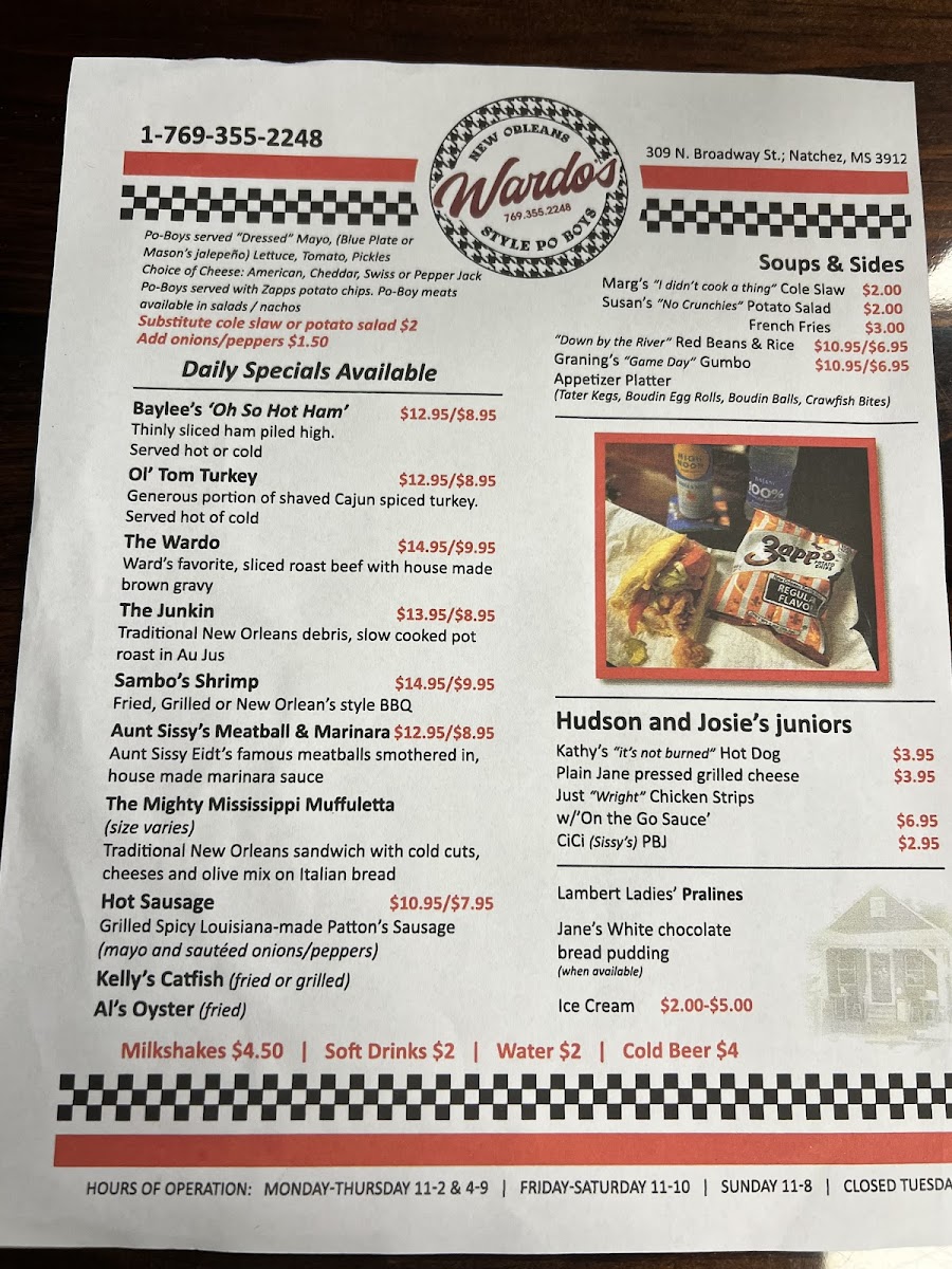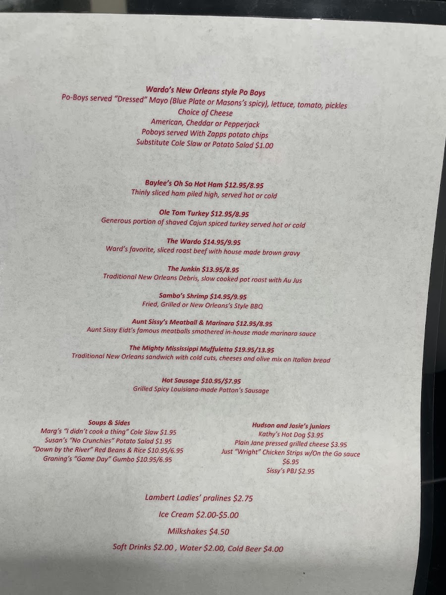 If you're looking for a place that delivers a true taste of southern comfort, then Wardo’s Poboys Menu is the spot to visit. Nestled in the heart of Natchez, MS, this charming eatery offers a variety of mouthwatering poboys, each crafted with fresh ingredients and bursting with bold flavors. From classic shrimp and oyster poboys to savory roast beef, every bite promises a satisfying experience that’ll keep you coming back for more. Whether you’re craving a crispy, fried sandwich or something with a little more spice, the menu is full of options to please every palate. Don't forget to pair your meal with a side of crispy fries or a refreshing drink to complete the experience. So, come hungry and enjoy the comforting, authentic flavors that make Wardo’s Poboys Menu a local favorite!